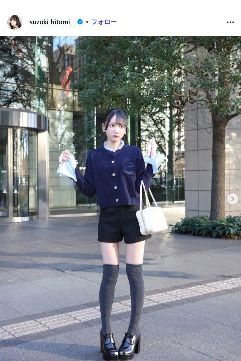 ≠ME鈴木瞳美、ショーパン✕ニーハイで美脚披露 ポニテ清楚コーデに「上品」「すべてが完璧」と反響