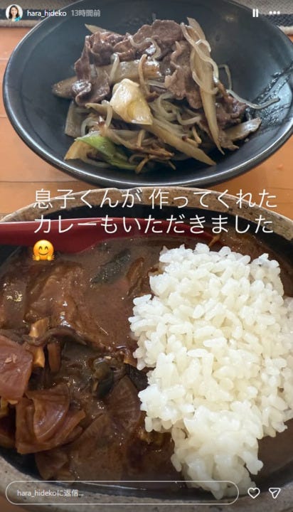 女優の原日出子が1月4日、自身のInstagramストーリーズを更新。残り物で作った料理を公開した。