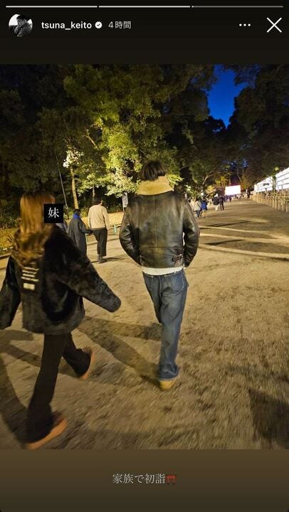 俳優の綱啓永が1月4日、自身のInstagramストーリーズを更新。家族との初詣の様子を公開した。