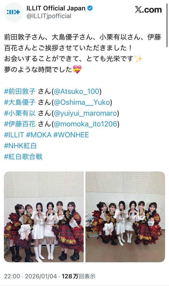 5人組ガールグループ・ILLIT(アイリット)のX(旧Twitter)が1月4日、更新された。AKB...