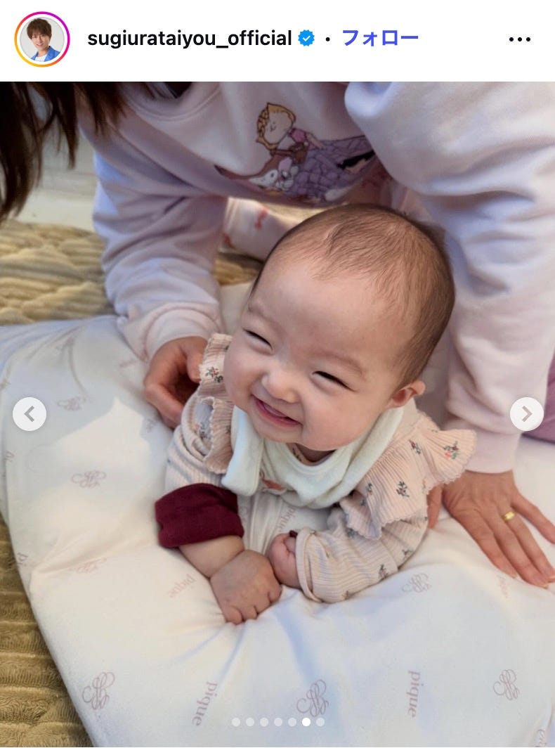 俳優の杉浦太陽が1月5日、自身のInstagramを更新。第5子・夢空(ゆめあ)ちゃんの寝返りショッ...