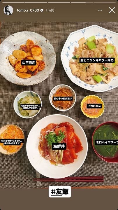 元AKB48でタレントの板野友美が1月7日、自身のInstagramストーリーズを更新。品数豊富な食...