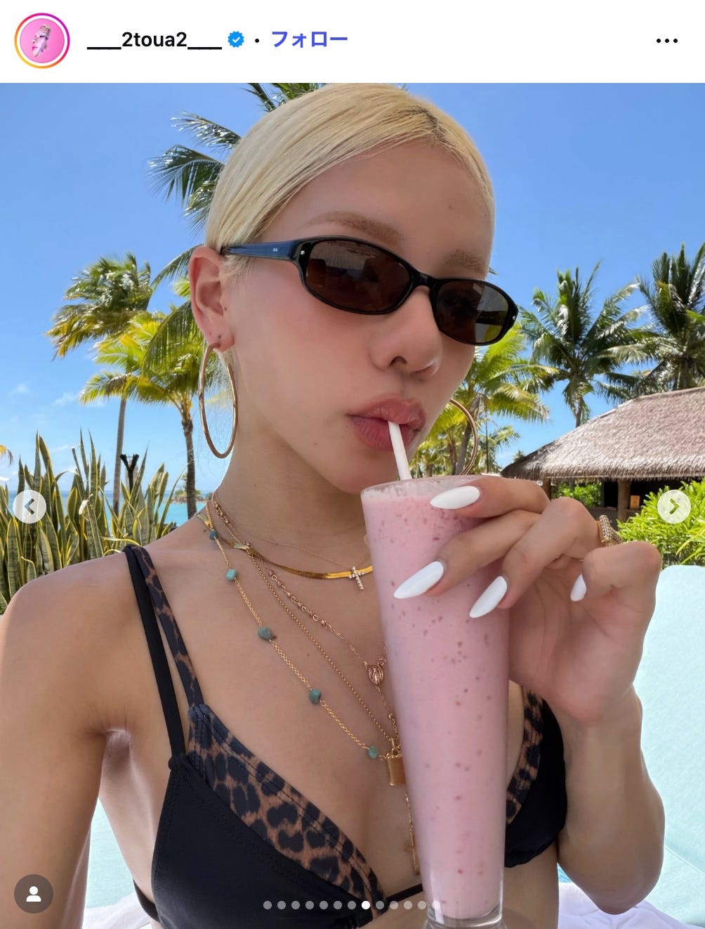 モデルのとうあが1月8日、自身のInstagramを更新。ビキニ姿を公開した。