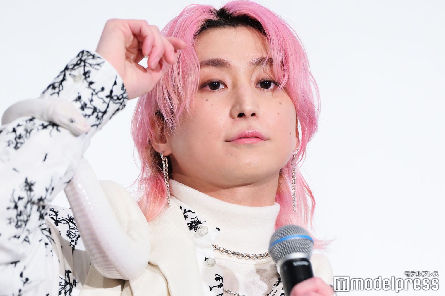 動じることなく首に蛇を巻く佐久間大介(C)モデルプレス