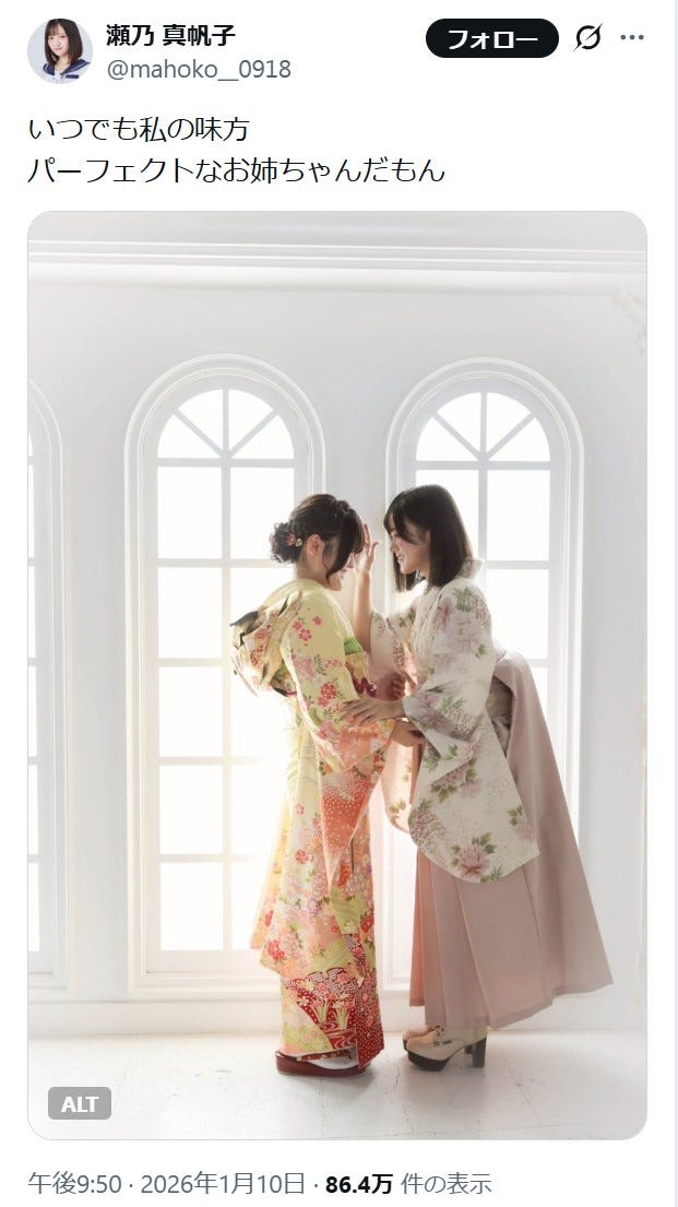 「今日好き」瀬乃真帆子、成人式迎える美人姉との和装前撮り公開 当日のヘアメイクも担当「尊い姉妹」「愛情溢れてる」