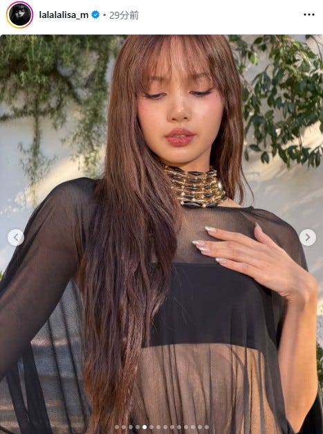 BLACKPINKリサ、大胆透け衣装姿で抜群スタイル披露「圧巻のオーラ」「着こなせるのすごい」と絶賛の声
