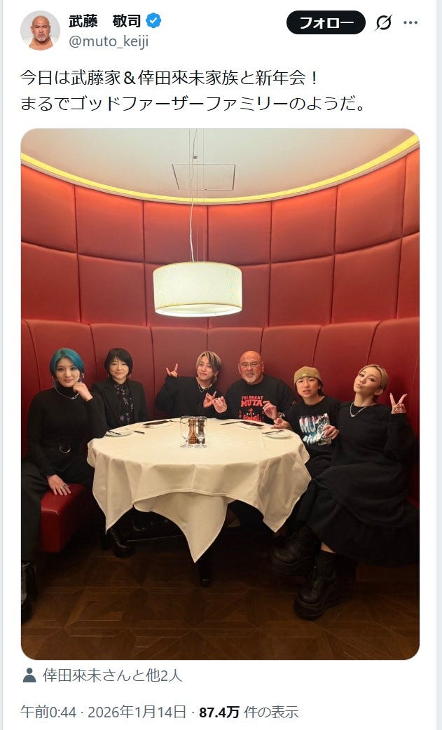 武藤敬司「武藤家&倖田來未家族と新年会」豪華集合ショット公開「まるでゴッドファーザーファミリーのようだ」