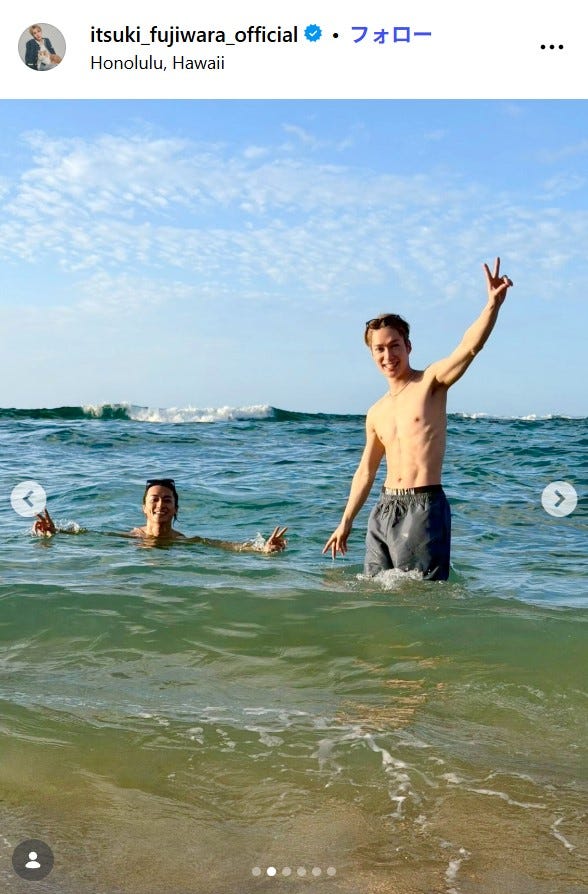 THE RAMPAGE藤原樹、BALLISTIK BOYZ砂田将宏とハワイへ 肉体美際立つ水着ショット公開「リアル兄弟みたい」「筋肉バキバキ」と反響