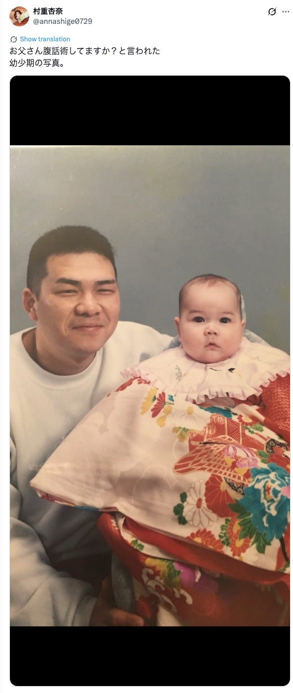 村重杏奈「お父さん腹話術してますか?と言われた幼少期の写真」に注目集まる「お人形さんにしか見えない」「可愛いけど笑っちゃう」