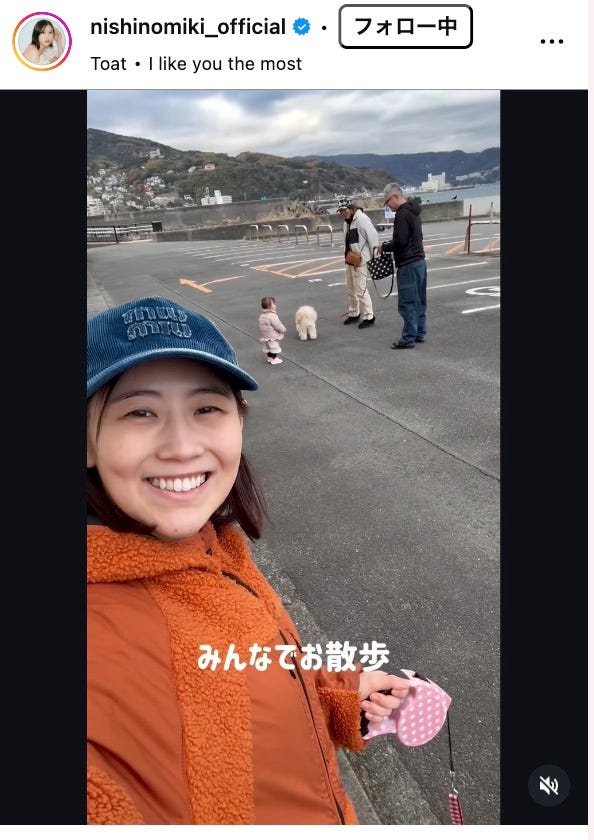 元AKB48でタレントの西野未姫が1月17日、自身のInstagramを更新。娘とともに実家に里帰り...