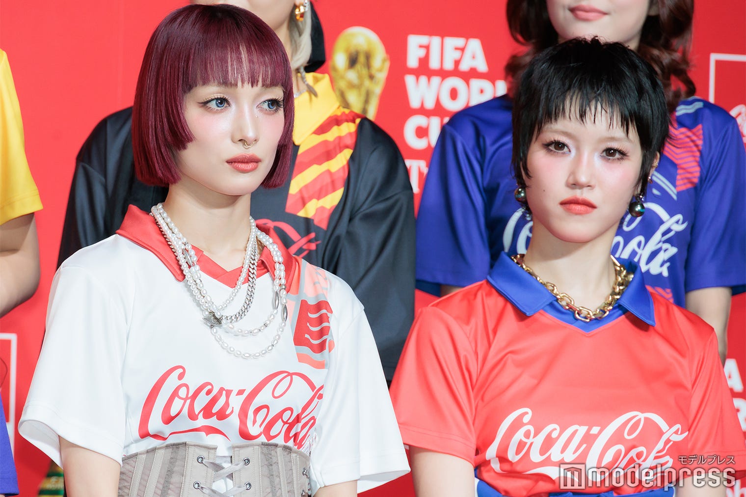 1. 「コカ・コーラ FIFA ワールドカップ(TM) トロフィーツアー」お披露目イベントに登場したXG/(上段左から)HARVEY、COCONA、JURIA(下段左から)MAYA、JURIN、CHISA、HINATA(C)モデルプレス