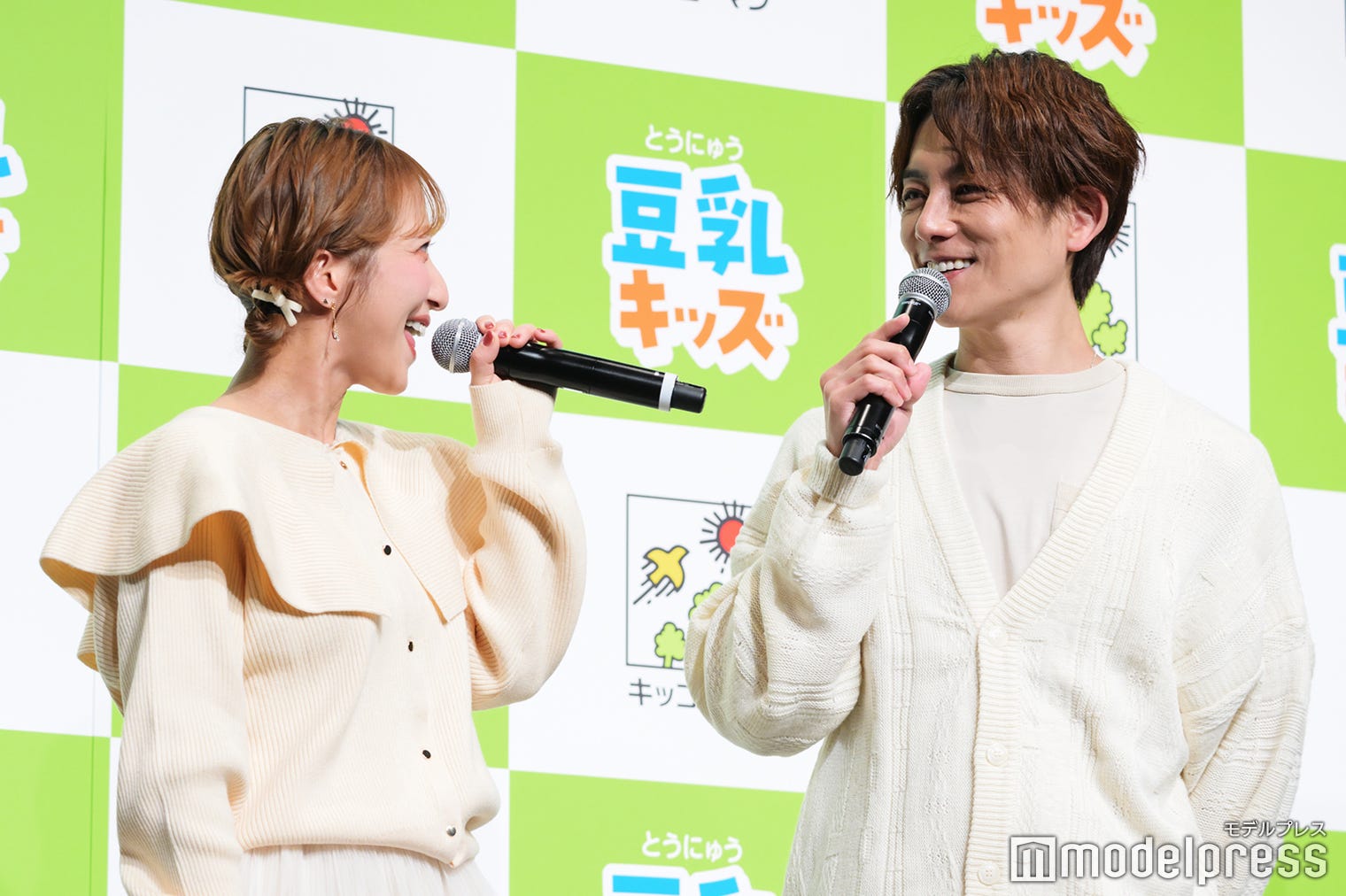 タレントの杉浦太陽と辻希美夫妻が21日、都内で開催されたキッコーマン「豆乳キッズ」新商品発表会に出席...