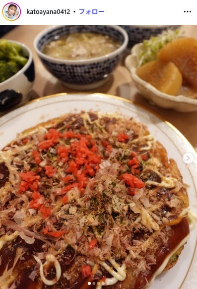タレントの加藤綾菜が1月20日、自身のInstagramを更新。お好み焼きを中心とした手料理5品を公...