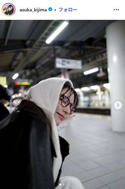 モデルの貴島明日香が24日までに、自身のInstagramを更新。駅のホームで撮影した姿を公開し、話...