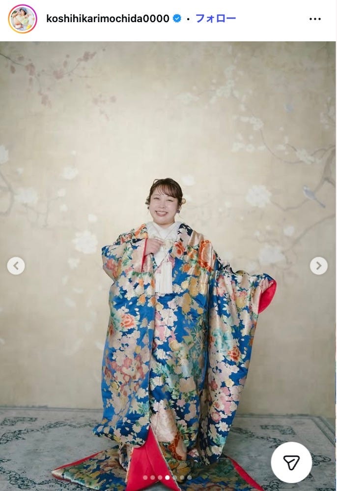 お笑いタレントの餅田コシヒカリが1月23日、自身のInstagramを更新。和装のウエディングフォト...