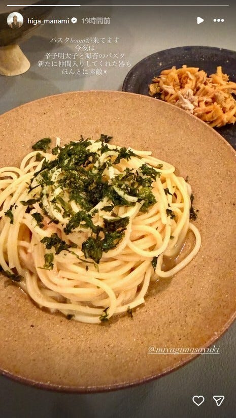 比嘉愛未、手作りパスタに反響「器がめちゃくちゃお洒落」「最高の組み合わせ」の声