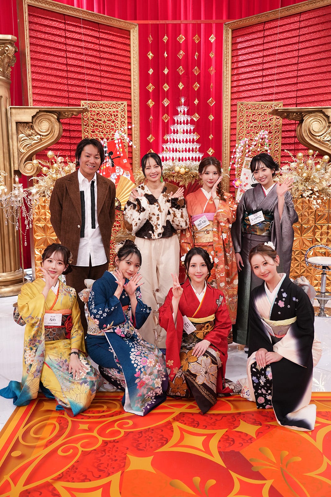 (上段左から時計回りに)狩野英孝、ベッキー、雨宮らむ、じゃがりこ、きこ、麻央、ゆめの、なの(提供写真)