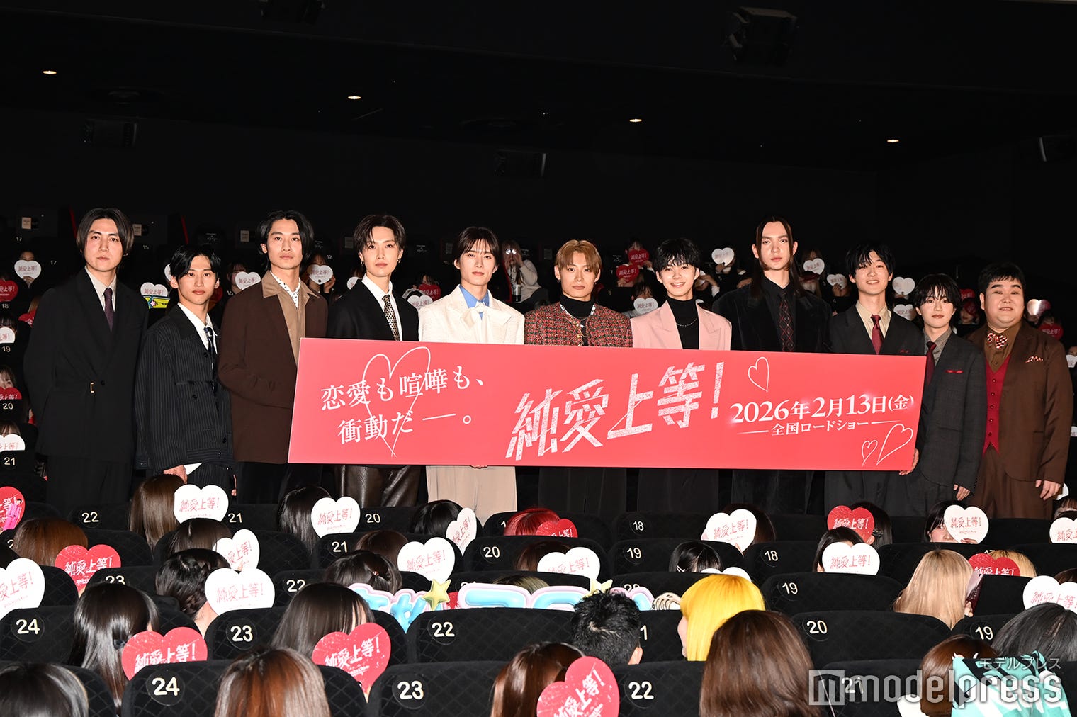 (左から)八重樫風雅監督、大川泰雅、浅野竣哉、堀夏喜、山中柔太朗、高松アロハ、白鳥晴都、嵐翔真、高橋璃央、宮脇優、小平大智(C)モデルプレス