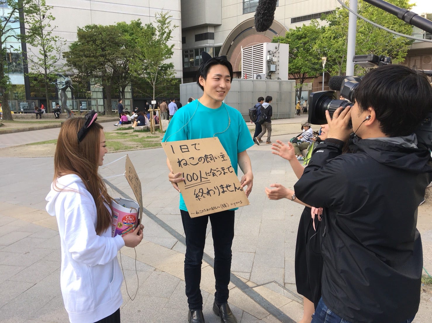 学生起業で猫の飼い主のマッチングサービスを運営していた際のTV取材のシーン(提供写真)