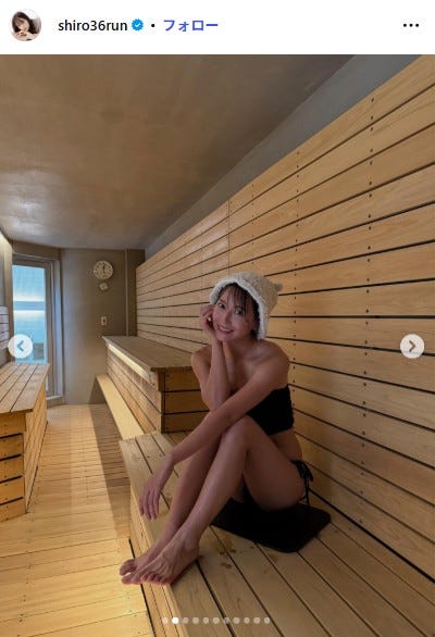 元NMB48白間美瑠、ベアトップビキニでサウナ満喫「脚長すぎ」「最強ボディ」と反響