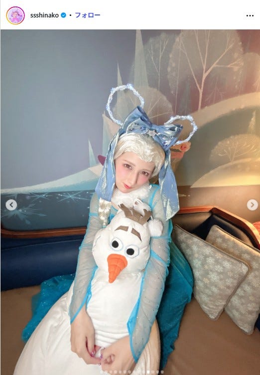 しなこ「アナ雪」エルサスタイリング 香港ディズニーランドホテルショットに「リアル実写版」「再現度高い」の声