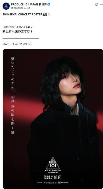 「PRODUCE 101 JAPAN 新世界」公式Xより