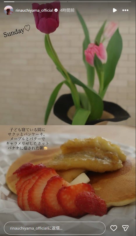 女優の内山理名が2月1日、自身のInstagramストーリーズを更新。手作りのパンケーキを公開し、反...