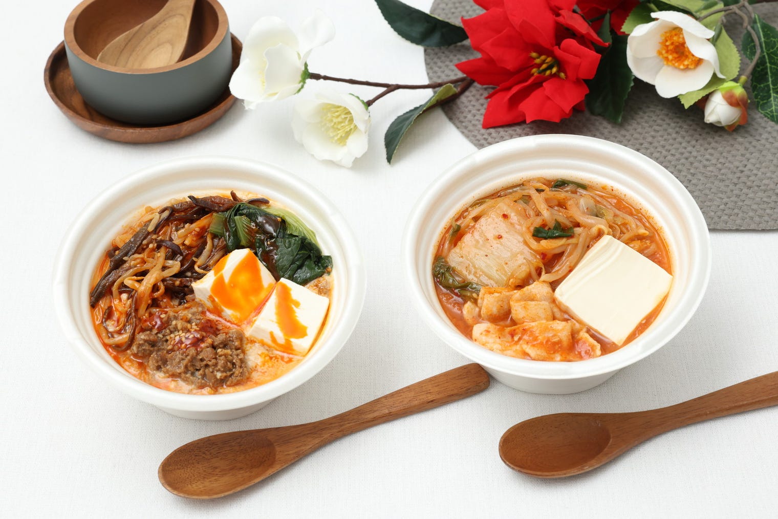 セブン、冬の身体を温める「スープごはん」キムチチゲと豆乳担々の新作2種登場