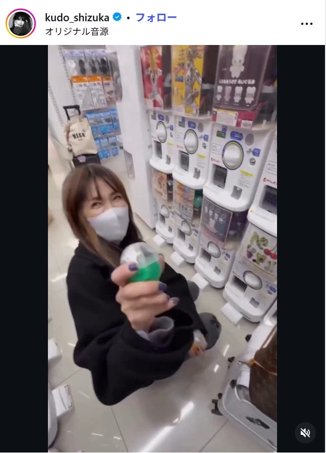 工藤静香、街中ガチャ楽しむプラベ動画にファン驚き「バレないの?」「親近感湧く」