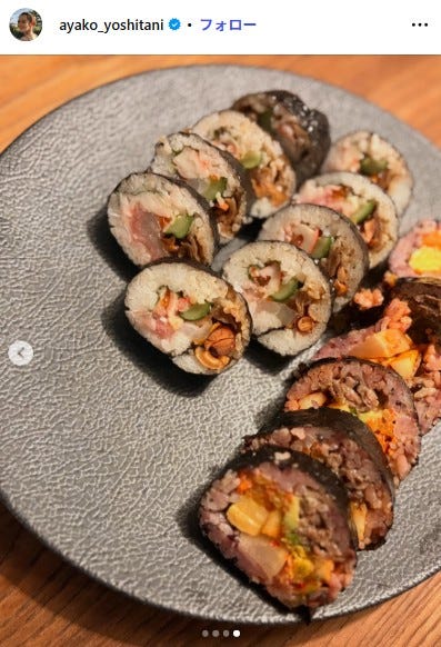 女優の吉谷彩子が2月3日、自身のInstagramを更新。初めて作った巻き寿司を披露し、反響が寄せら...