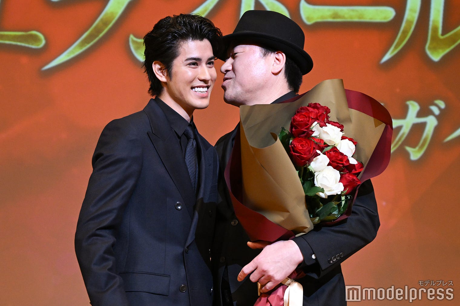 寛一郎に耳打ちする佐藤二朗(C)モデルプレス