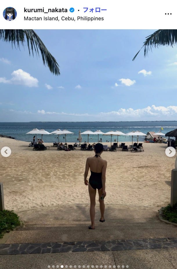 俳優・浅野忠信の妻で女優の中田クルミが2月4日、自身のInstagramを更新。滞在中のセブ島でのプ...