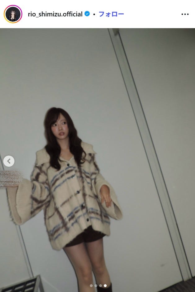 日向坂46の清水理央が2月4日、自身のInstagramを更新。オーバーサイズニットとショート丈ボト...