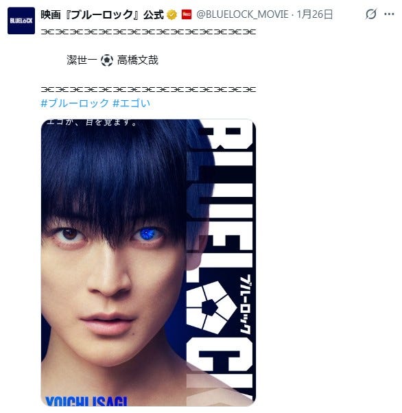 1月26日から2月6日にかけて、俳優の高橋文哉主演の実写映画『ブルーロック』(2026年夏公開)のメ...