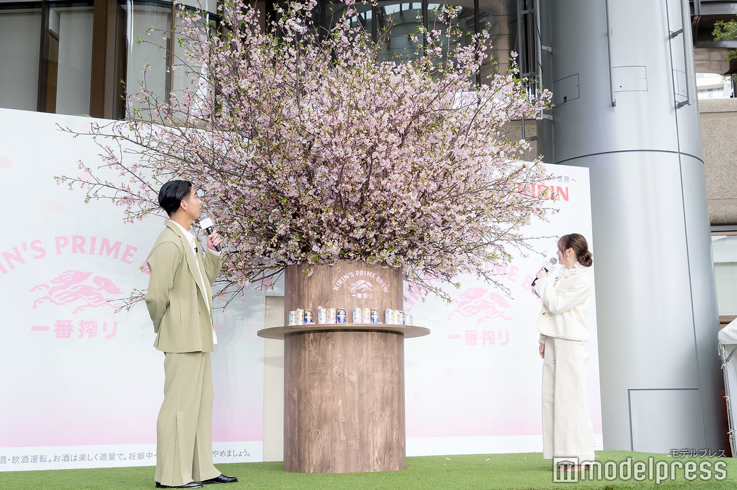 女優の福原遥と俳優の賀来賢人が2月6日、都内で行われた「『一番搾り』冬のお花見体験会」オープニングP...
