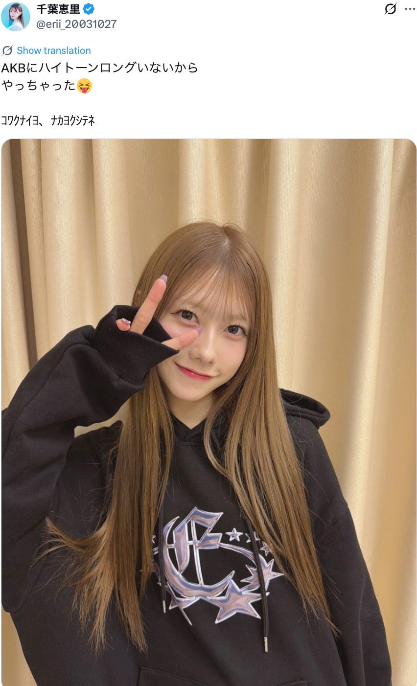 AKB48千葉恵里、ハイトーンヘアに電撃イメチェン「雰囲気全然違う」「めちゃくちゃ似合う」と反響続々