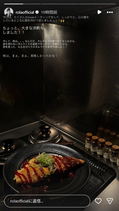 モデルのローラが2月6日、自身のInstagramストーリーズを更新。手作りオムライスを公開し、反響...