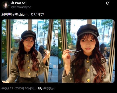「日プ女子」出身・水上凜巳花「輪郭変わりすぎ」“別人級”近影ショット公開「ますます綺麗に」「ビジュ最強」と反響