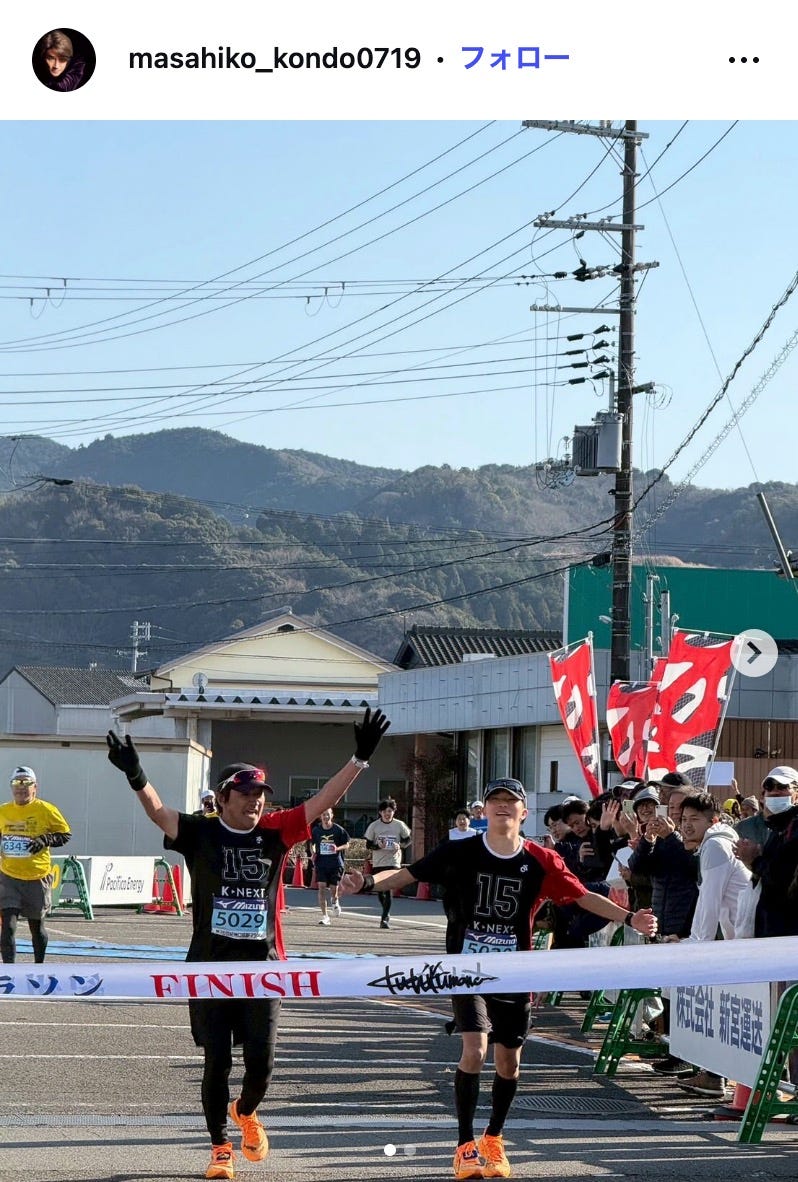 歌手の近藤真彦が2月8日、自身のInstagramを更新。長男とマラソン大会に出場した様子を公開し、...