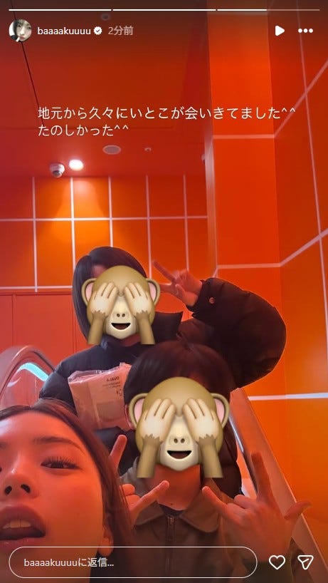 モデルの井手上漠が2月9日、自身のInstagramストーリーズを更新。いとこと共に過ごす姿を公開し...