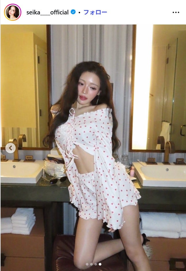 せいせい、セクシーなパジャマ姿で魅了「攻めてる」「スタイル憧れる」