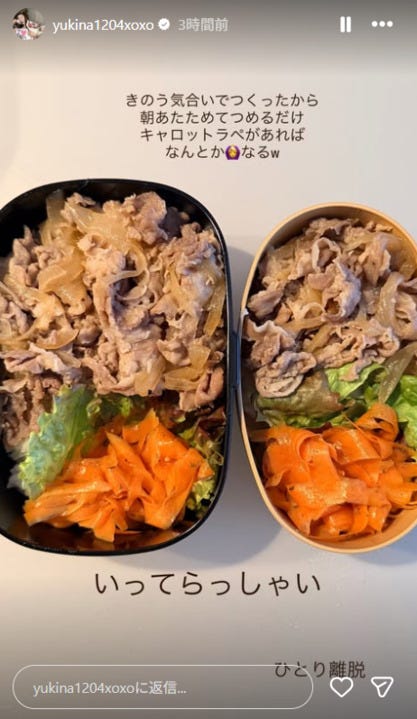 元タレントの木下優樹菜が2月10日、自身のInstagramストーリーズを更新。手作り弁当を公開した...