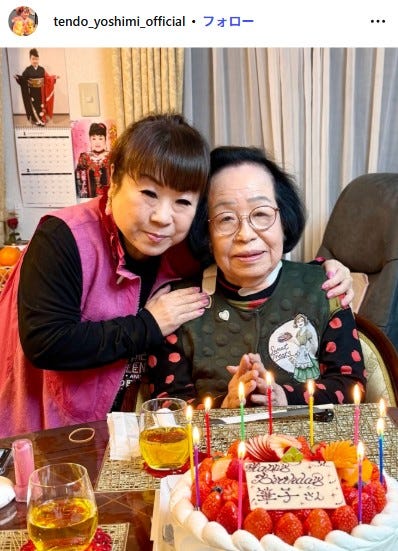 歌手の天童よしみが2月9日、自身のInstagramを更新。93歳を迎えた母親との2ショットを公開し...