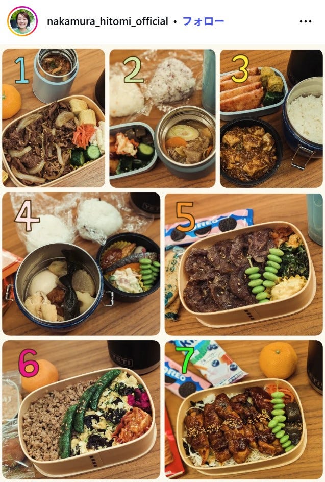 フリーアナウンサーの中村仁美が2月10日、自身のInstagramを更新。手作り弁当7選を公開し、話...