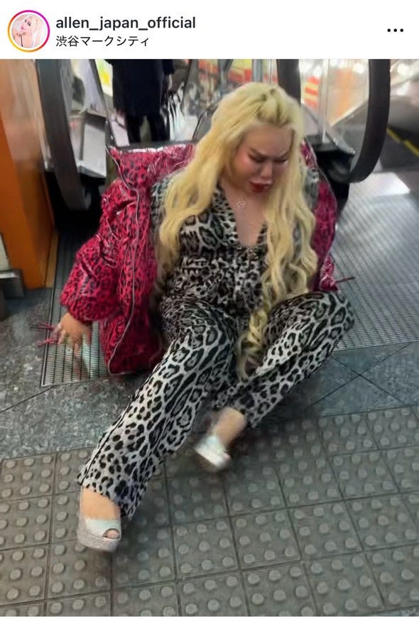 アレン様、渋谷駅降臨 エスカレーターから“ズッコケ”動画公開に「降り方がアクロバティック」「お茶目ビューティー」の声