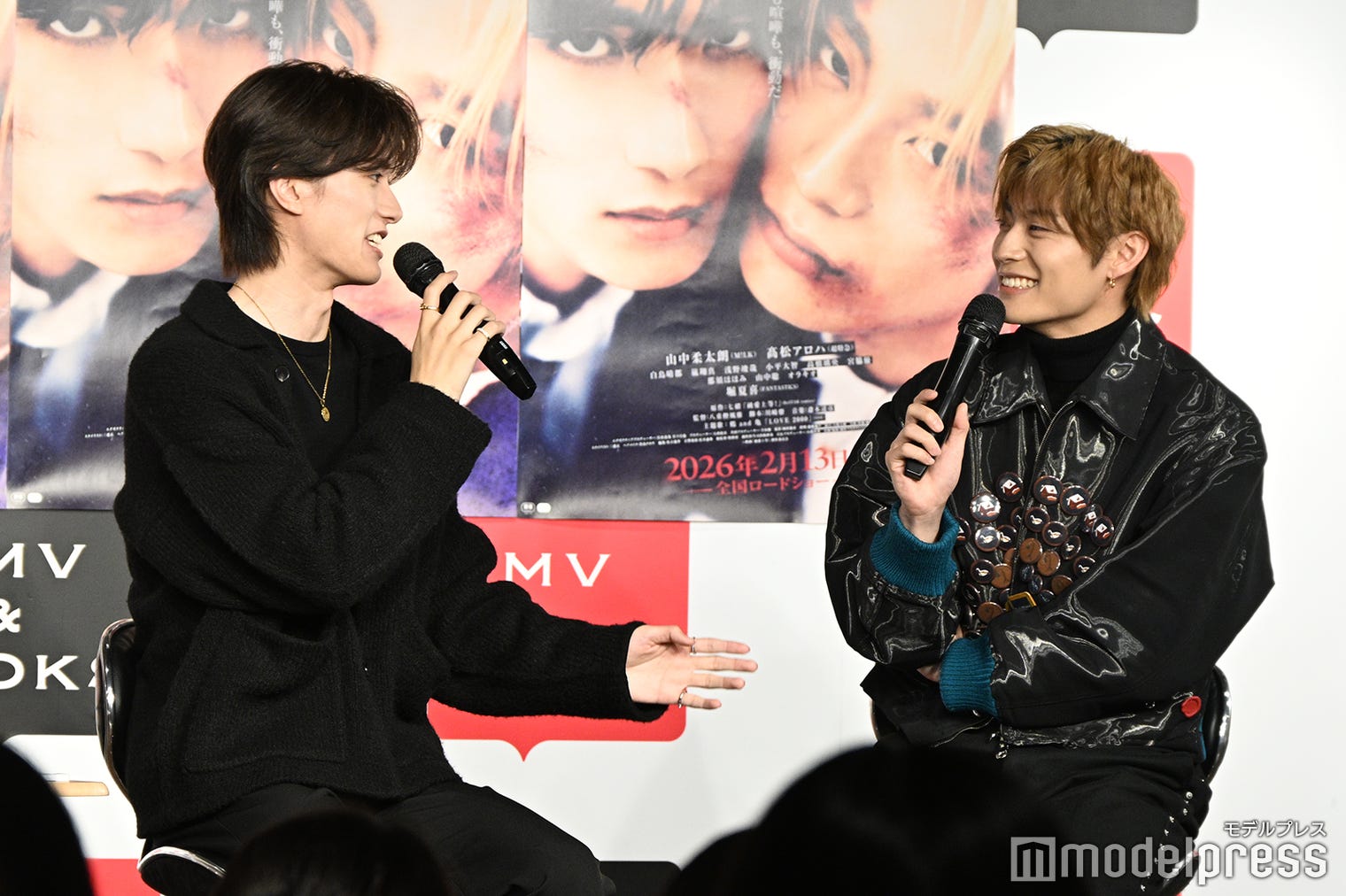M!LKの山中柔太朗と、超特急の高松アロハ(「高」は正式には「はしごだか」)が2月12日、東京・HM...
