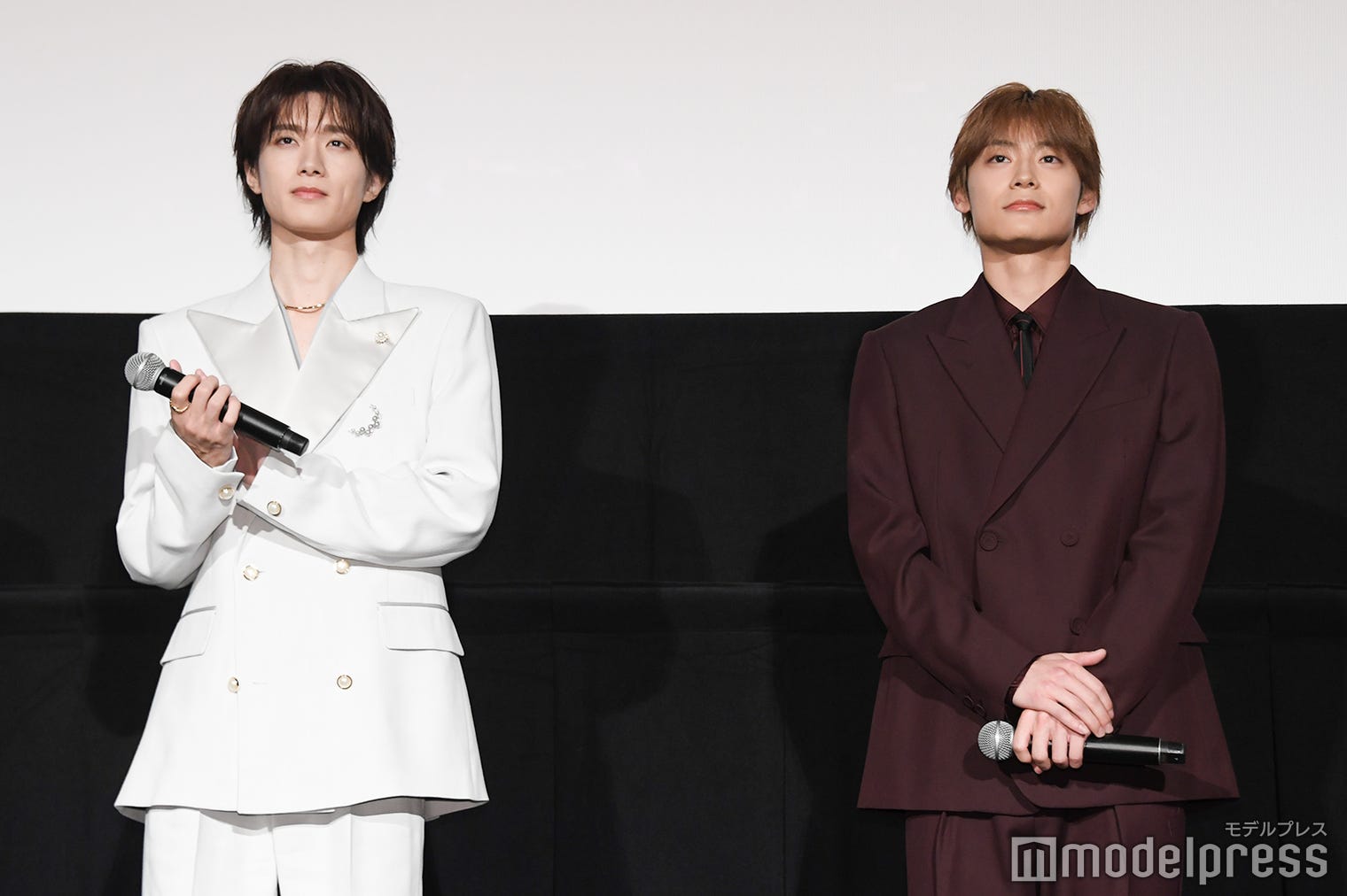 8. 登壇後耳打ちをする山中柔太朗、高松アロハ(C)モデルプレス