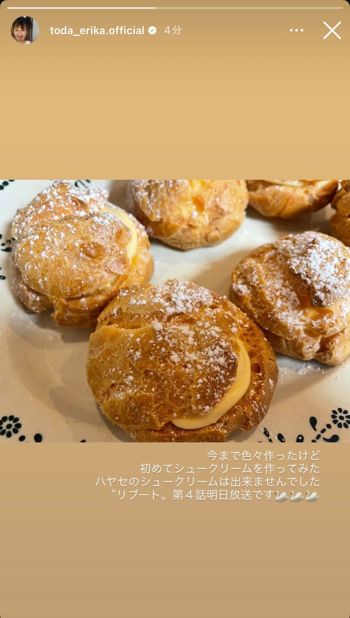 女優の戸田恵梨香が2月14日、自身のInstagramストーリーズを更新。初めて作ったシュークリーム...