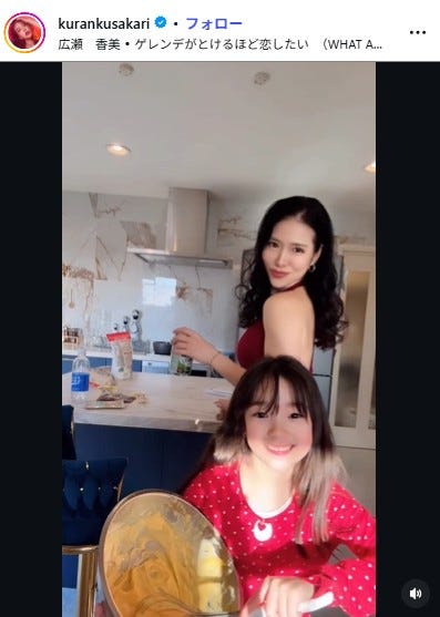 モデルの紅蘭が2月12日、自身のInstagramを更新。自宅キッチンで長女とバレンタイン用スイーツ...