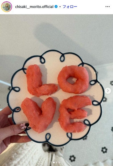 元モーニング娘。の森戸知沙希が2月14日、自身のInstagramを更新。リボン型のパンを公開した。